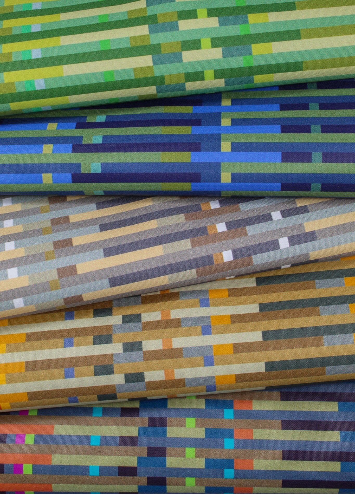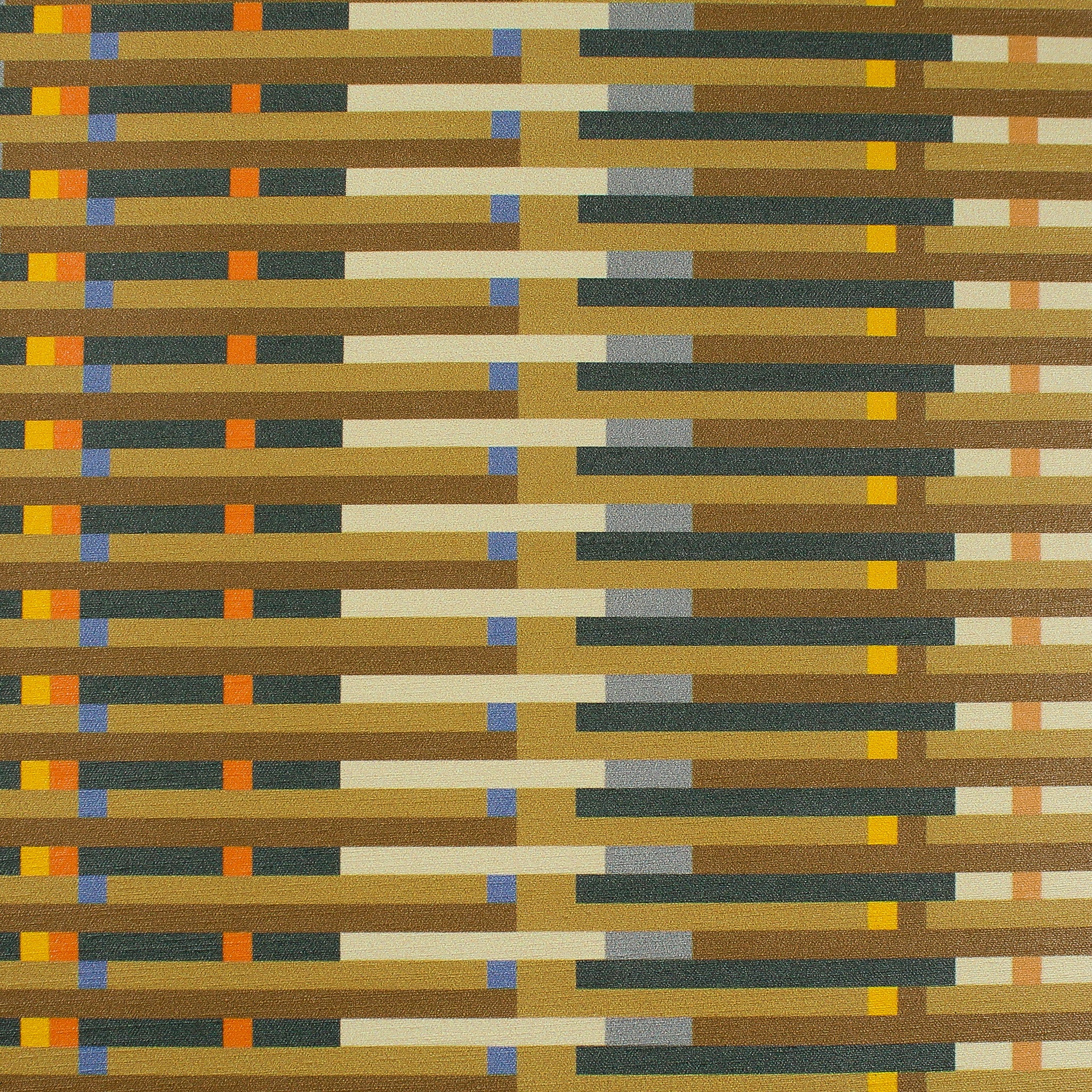 Iris is a modern, printed vinyl that brings structure and movement together in a striking striped geometric design. Its clean lines and repeating blocks give it a contemporary, multi-color linear appearance while still maintaining the smooth, durable performance of vinyl.